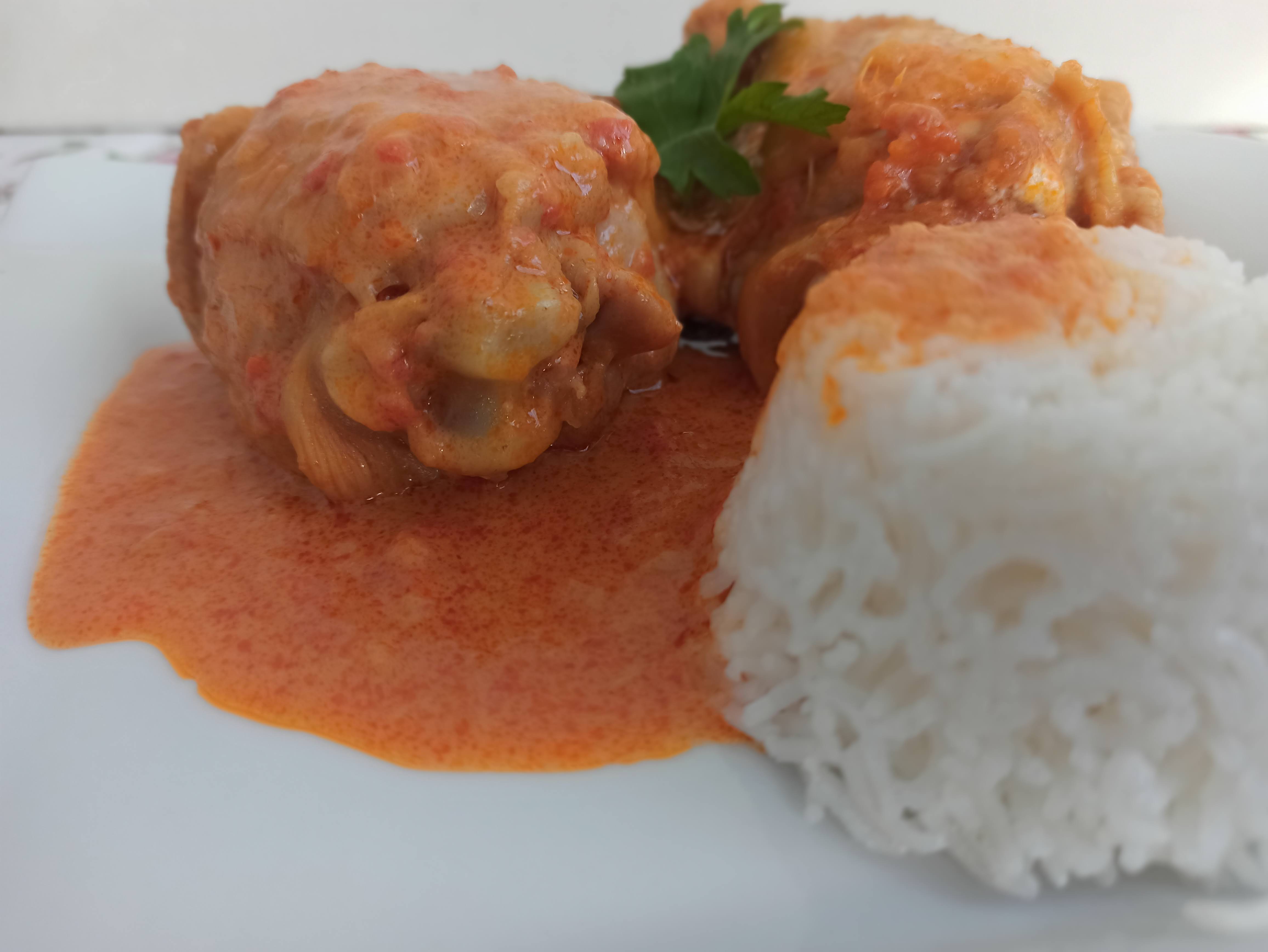 Menú de Pollo en salsa acompañado de arroz en thermomix