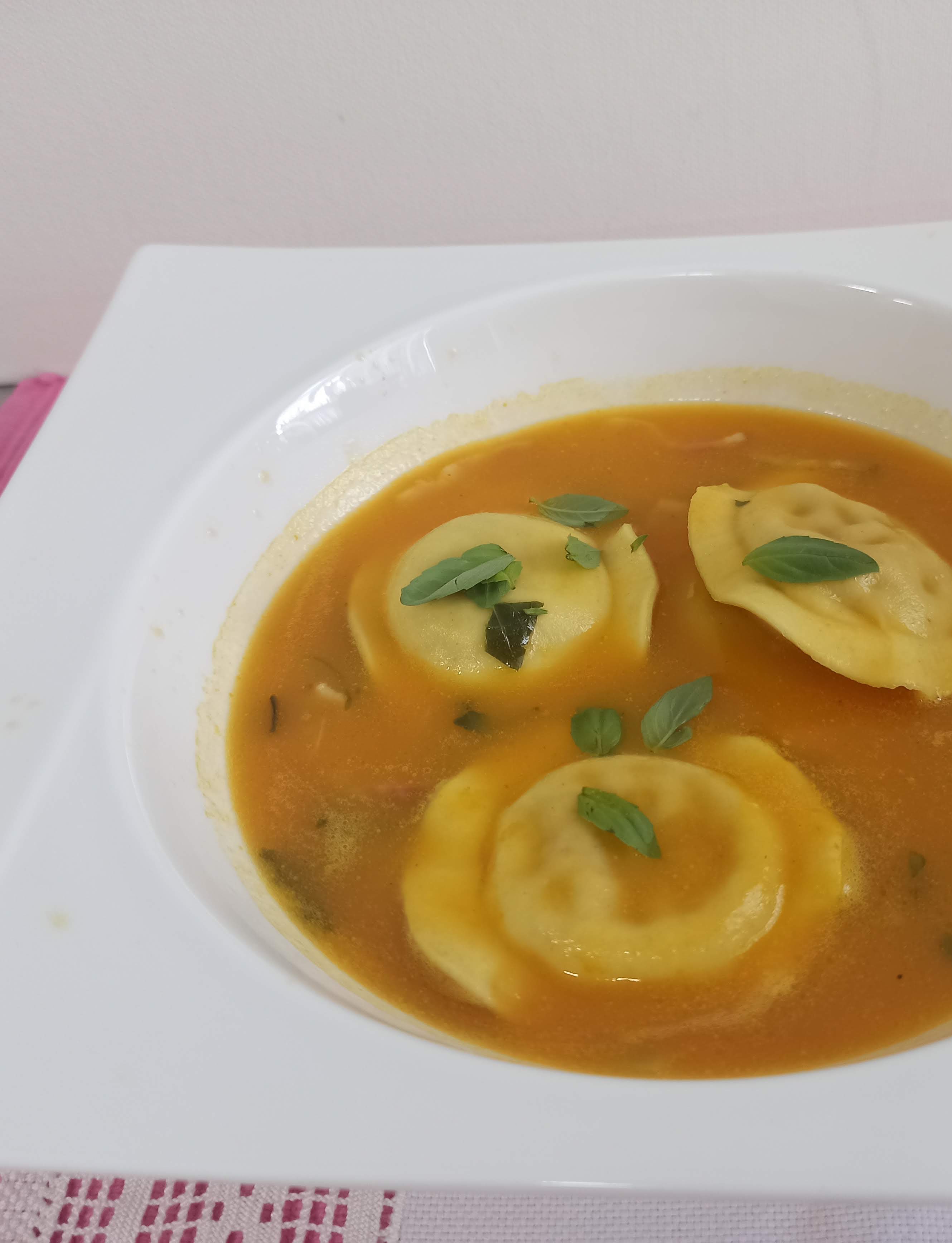Crema de calabaza con raviolis hecho en Thermomix