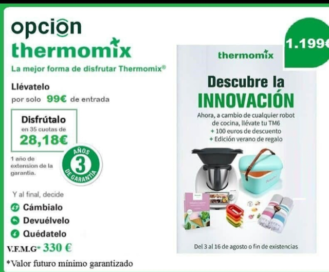 100,00 € de descuento con cualquier robot de cocina que no utilicéis o esté estropeado. podéis cambiar por un THERMOMIX TM6 POR TAN SOLO 1199,00€