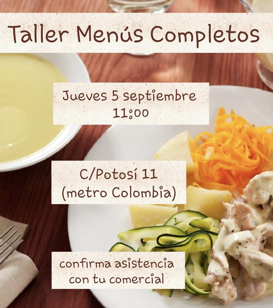 ¡¡CLASE DE COCINA MENúS COMPLETOS!! Jueves 5 Septiembre 11:00 y a las 18:00