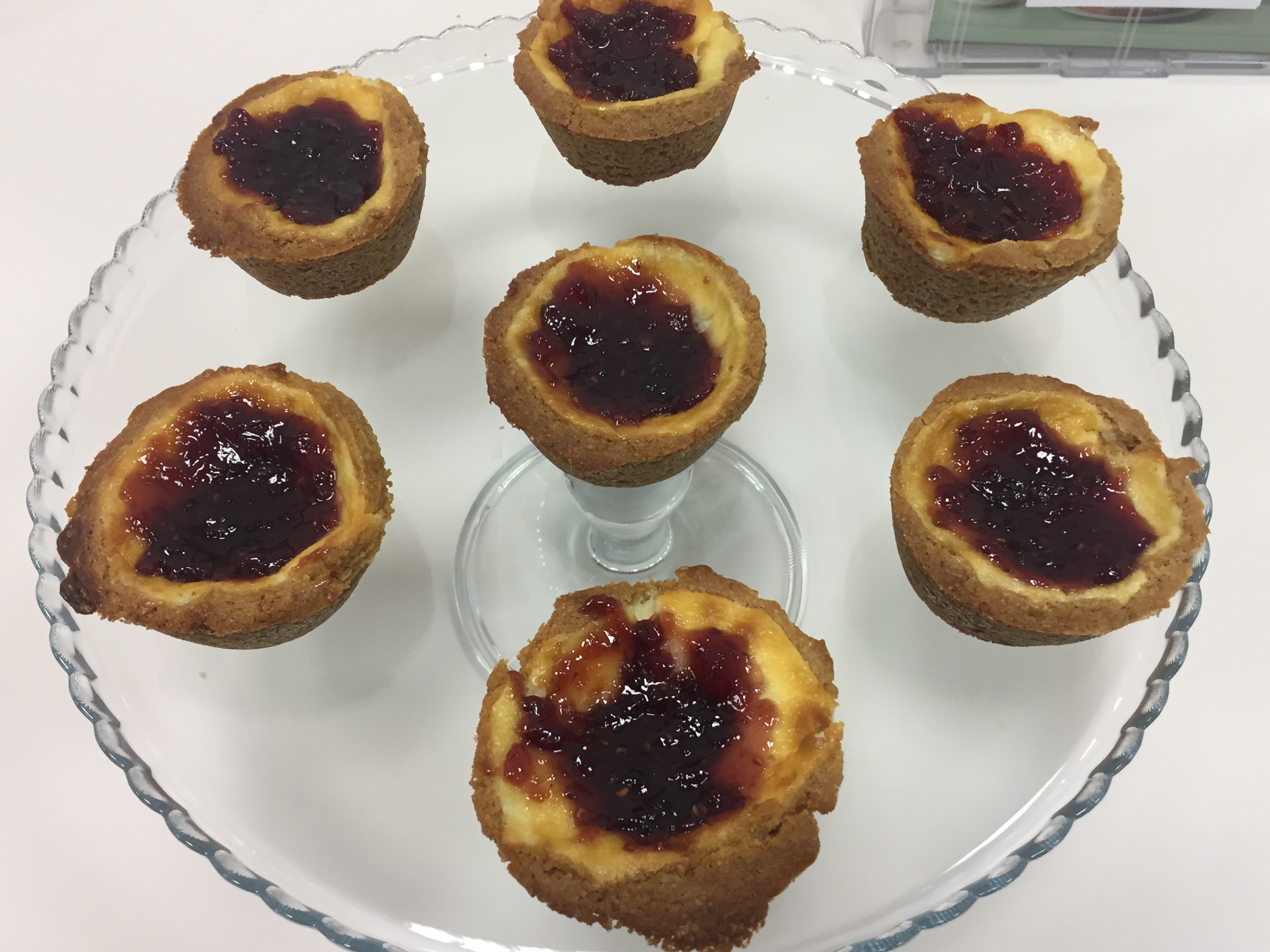 - Horneamos durante 20 minutos, 180º, al acabar dejamos enfriar, las sacamos con cuidado. Ponemos encima de cada cheescake una cucharadita de mermelada