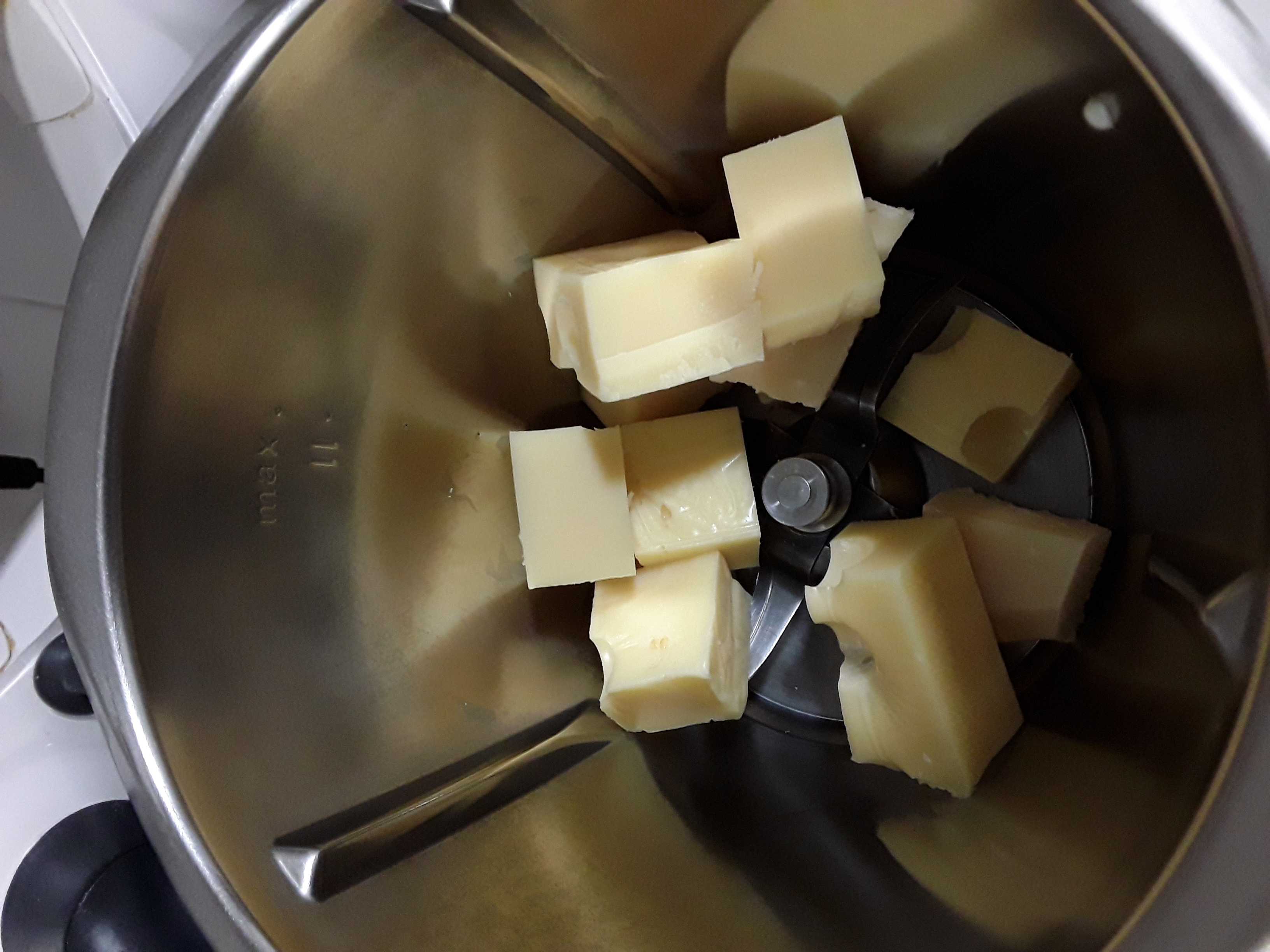 ☆ Ponemos en el vaso el queso parmesano y el emmental en trozos y rallamos 10 seg/vel 10 .Retiramos del vaso y reservamos.