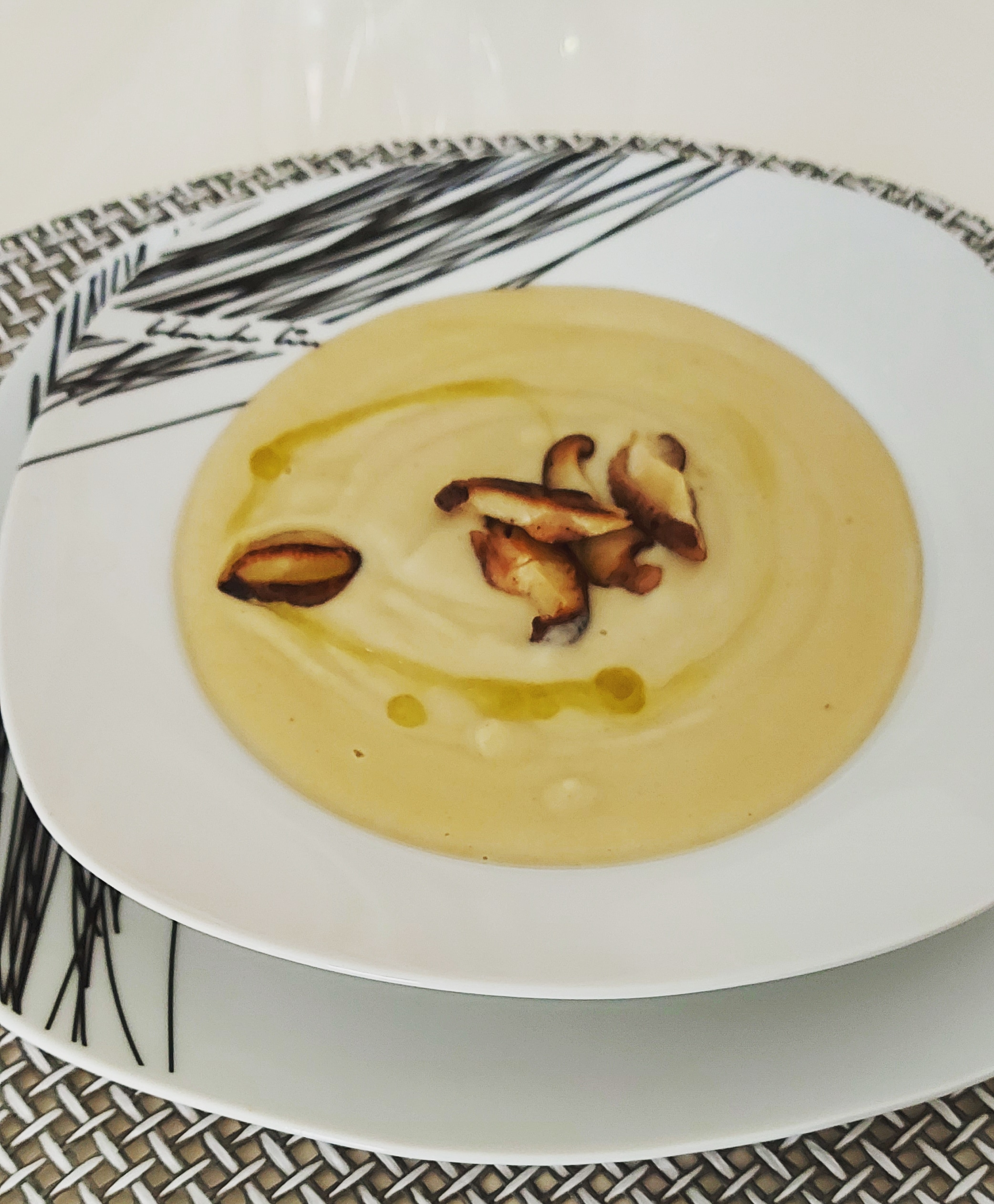 Crema de garbanzos con puerros y setas shiitake