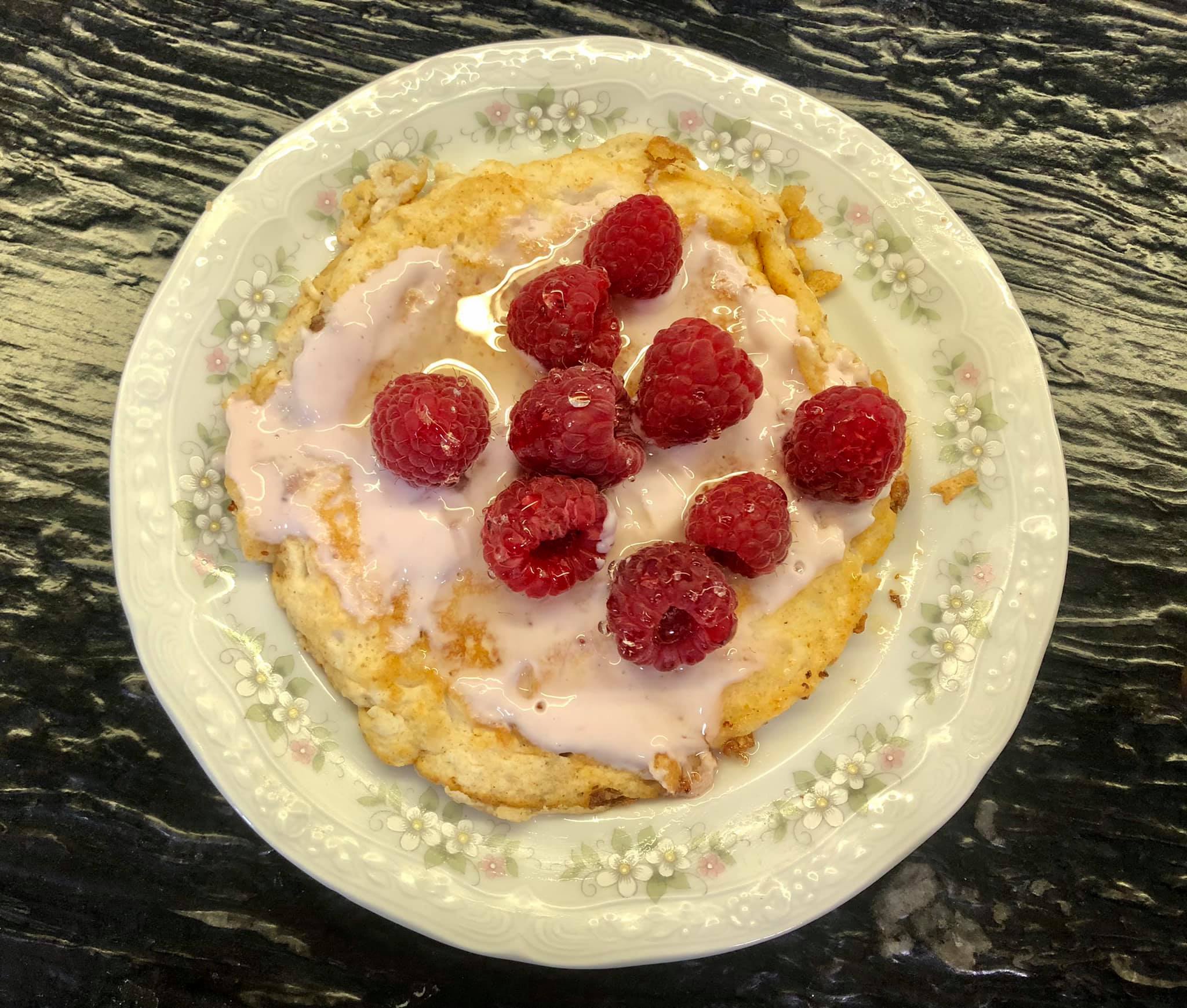 Luego echa queso fresco 0% de fresa , frambuesas y sirope de ágave.