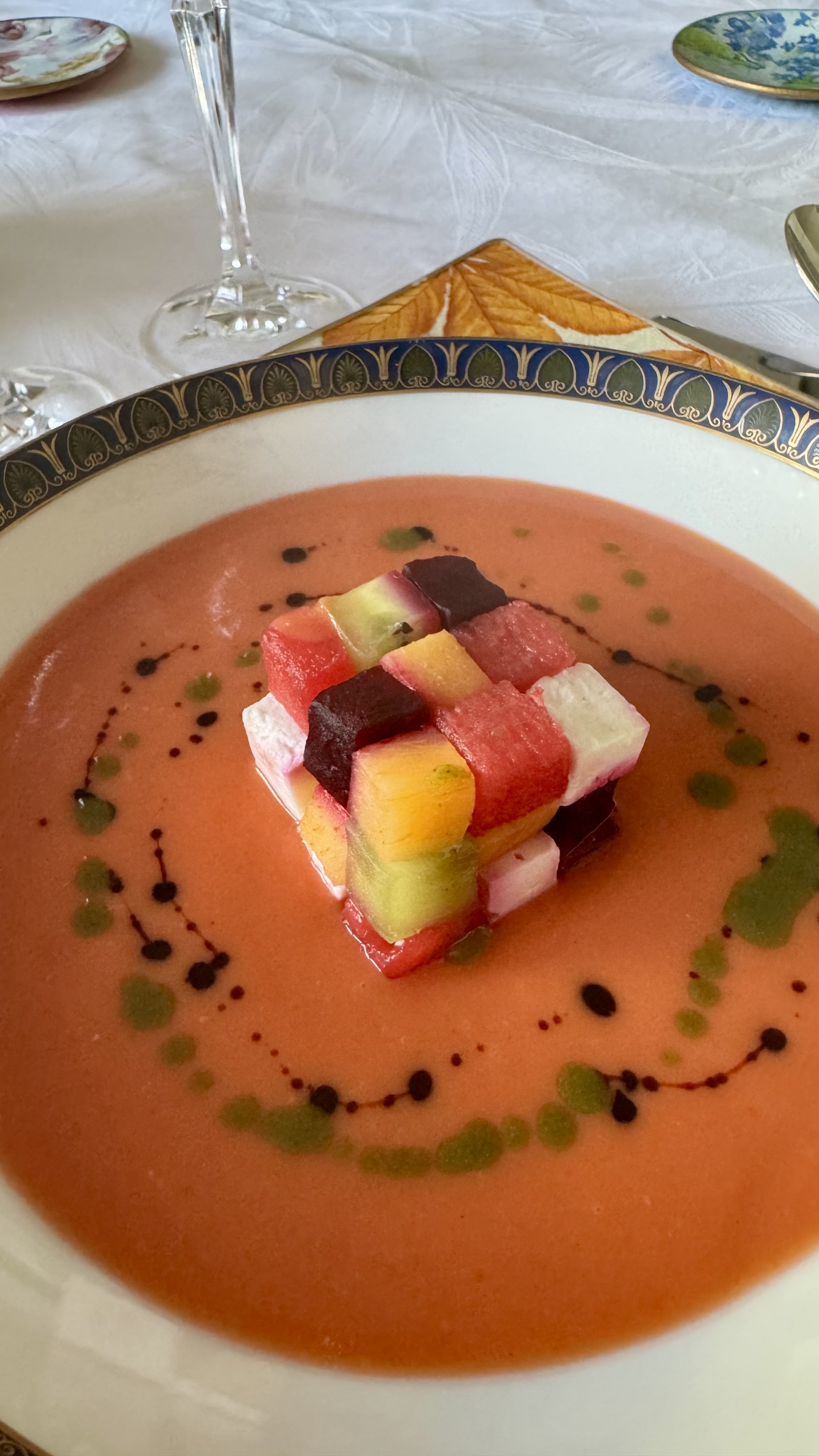 Salmorejo de sandía con cubo de Rubik